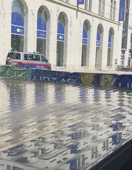 Ein Stadtblick diesmal aus dem Innenraum des oberösterreichischen Architekturforums: Ausstellungsan…