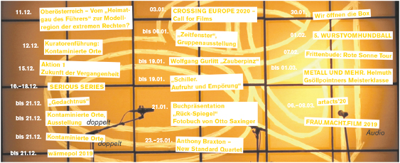 Die redaktionellen Kunst- und Kulturempfehlungen für die kommende Periode stammen von Zoe Goldstein, Us(c)hi Reiter, Elisabeth Schedlberger, Karin Schneider, The Slowdude, Gabriele Spindler und Andre Zogholy. Werte Leserin, werter Leser, schauen sie da und dort vorbei!