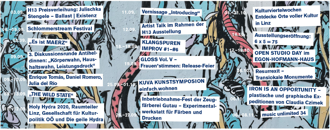 Elisa Andessner, Claudia Czimek, Anna Fessler, Margit Greinöcker und Violetta Wakolbinger sind das Professionelle Publikum dieser Ausgabe und haben ihre persönlichen Kunst- und Kulturempfehlungen für diesen Herbst gegeben. Kunst- und Kultur in Zeiten der Sars-Cov-2- Pandemie – eine Herausforderung, die man als BesucherIn unbedingt annehmen sollte.