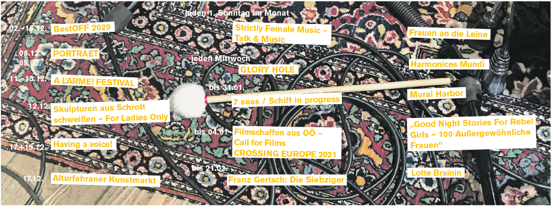 Die Redaktion bedankt sich beim professionellem Publikum dieser Ausgabe und zwar bei Simone Barlian, Katharina Brandl, Anna Jermolaewa, Korinna Kohout, Gregor Selim Obermüller/Selim eins, Tatjana Schinko und Andrea Winter, für die Empfehlungen. Das trotz Lockdown und vagem Ausblick. An dieser Stelle noch der Tipp an unsere LeserInnenschaft: vergewissern Sie sich vor dem Besuch einer Kulturveranstaltung ob der Termin hält und seien sie wieder so richtig präsent.