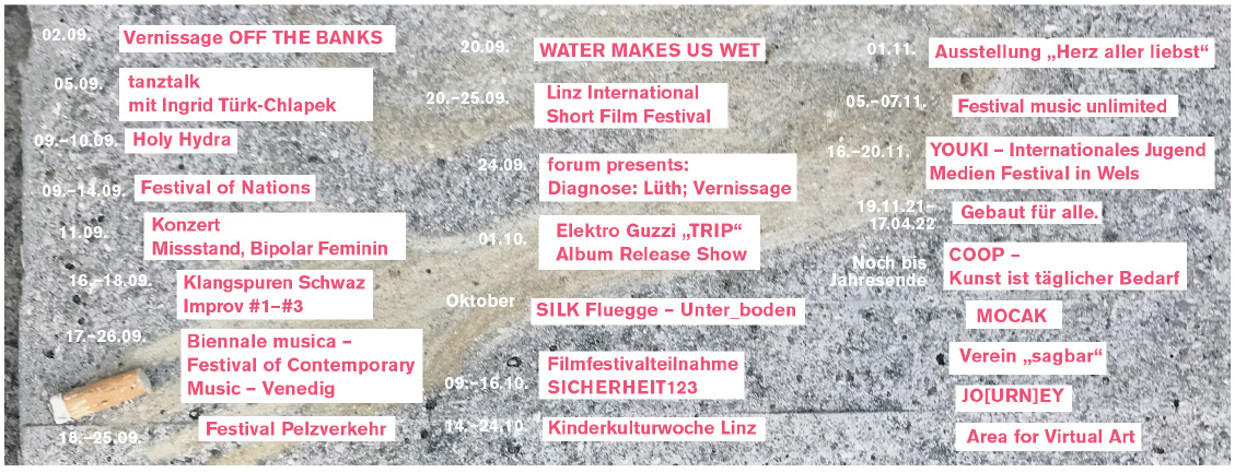 Das Professionelle Publikum dieser Ausgabe bestehend aus: Ulrike Asamer, Amanda Augustin, Parisa Ghasemi, Silke Grabinger, Herta Gurtner, Julia Gutweniger, Nicole Honeck, Amina Lehner, Anna Rieder, Gerlinde Roidinger und Julius Stieber, hat wieder viele Kunst- und Kulturempfehlungen in Linz, Oberösterreich und darüber hinaus für unsere LeserInnenschaft parat.
