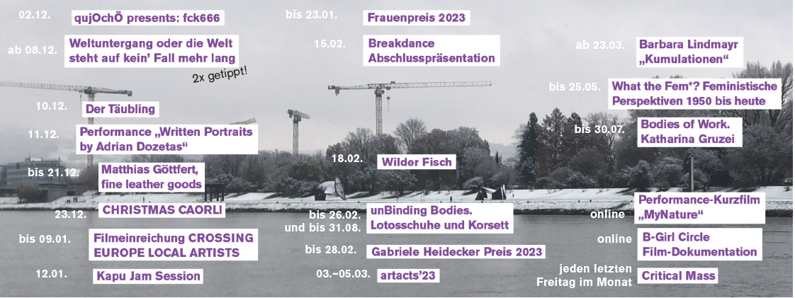 Gegen die Kälte! Sigrid Blauensteiner, Stefan Eibelwimmer, Pia Mayrwöger, Jasmin Mersmann, Klara Pötscher, Magdalena Schlesinger und Birgit Schweiger geben dieses Mal in unserem redaktionellen Veranstaltungskalender ihre persönlichen Empfehlungen aus Kunst und Kultur.