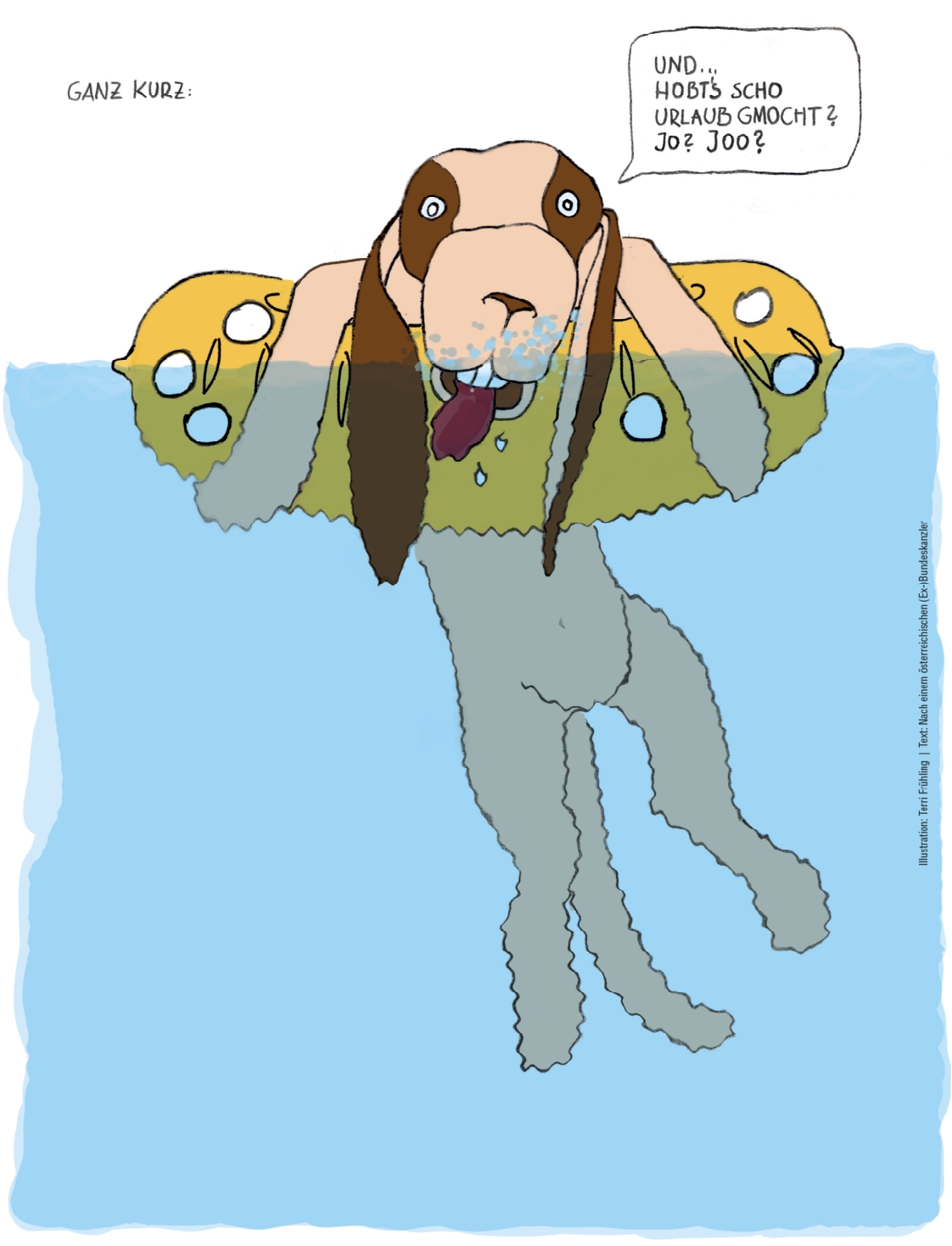 Illustration Terri Frühling. Text: Nach einem österreichischen (Ex-)Bundeskanzler
