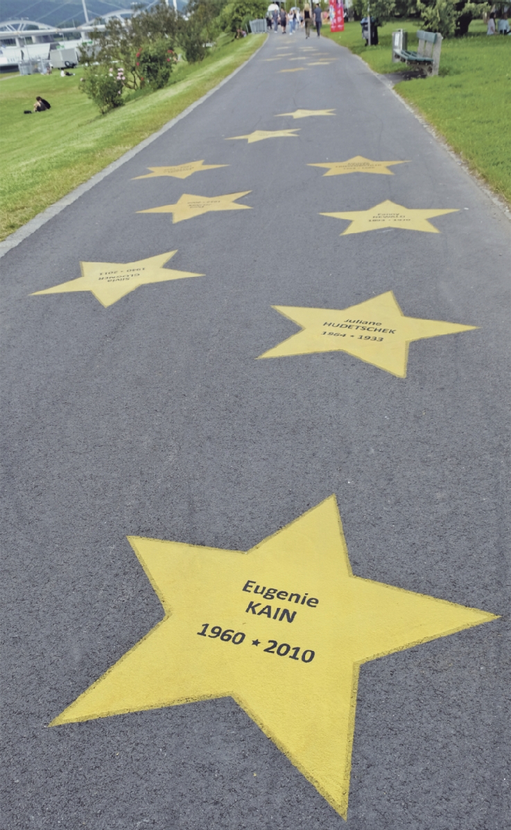 Die Ernst-Koref-Promenade mit Blick auf die Donau ist eine schöne und vor allem viel frequentierte Stelle in Linz. Und jetzt ist sie noch um einiges interessanter und bereichernder geworden. Denn 63 Sterne zieren die rund 400 Meter zwischen den beiden Kulturgebäuden. Jeder Stern erinnert an und würdigt eine bereits verstorbene Frau mit Linz-Bezug. Die Frauen haben in unterschiedlichen Bereichen Herausragendes geleistet oder sind in ihrer Zeit als Pionierin aufgefallen.